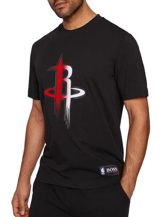 A statement tee printed with a colorful basketball graphic. Crafted in interlock cotton with stretch for casual comfort, this short-sleeved T-shirt is trimmed with labeling at the left hem and inner collar. Combine it with the coordinating shorts or tracksuit bottoms for contemporary streetwear. Co-branded casualwear, part of a limited-edition capsule collection in collaboration with the NBA.
