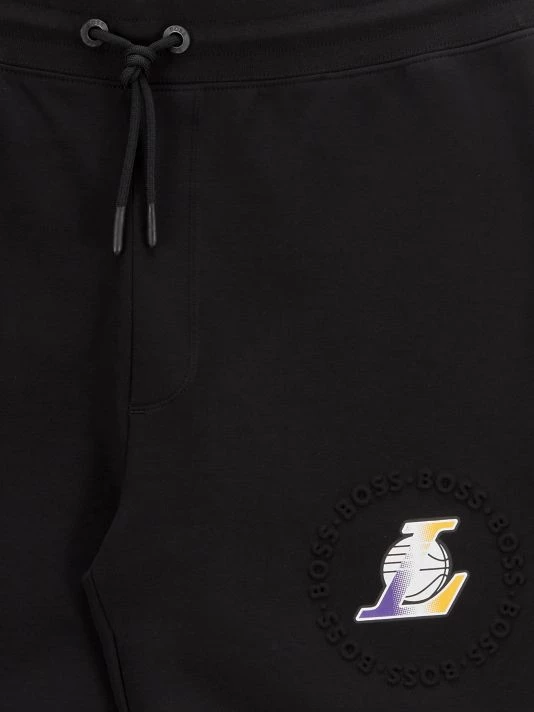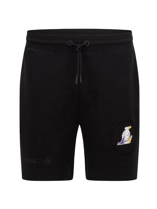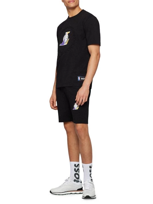 In a collaboration with the NBA, this HUGO BOSS themed activewear collection features logos from superteams like the Brooklyn Nets, Houston Rockets, and more. These cotton-blend shorts feature the Lakers logo and the embossed brand name on the left leg.