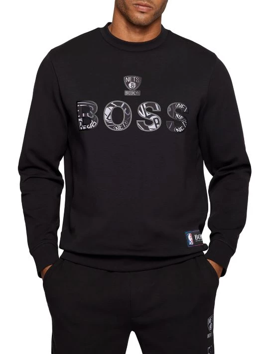 This cotton-blend sweatshirt features the Nets and BOSS logos on the chest.