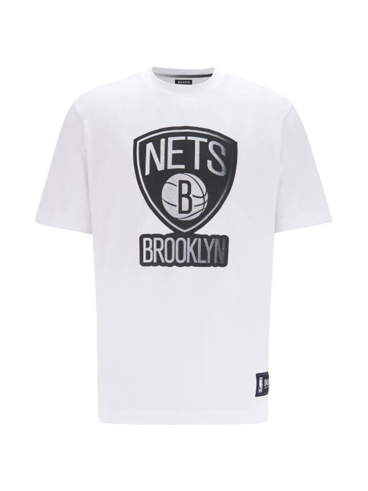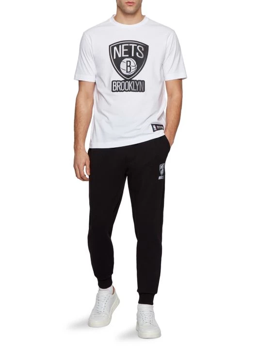 A statement tee printed with a colorful basketball graphic. Crafted in interlock cotton with stretch for casual comfort, this short-sleeved T-shirt is trimmed with labeling at the left hem and inner collar. Combine it with the coordinating shorts or tracksuit bottoms for contemporary streetwear. Co-branded casualwear, part of a limited-edition capsule collection in collaboration with the NBA.