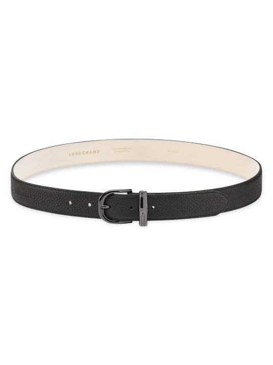 From the Longchamp 3D Collection. This adjustable belt is made in France of finely grained leather with a polished metal buckle. The understated debossed logo finishes this piece.
