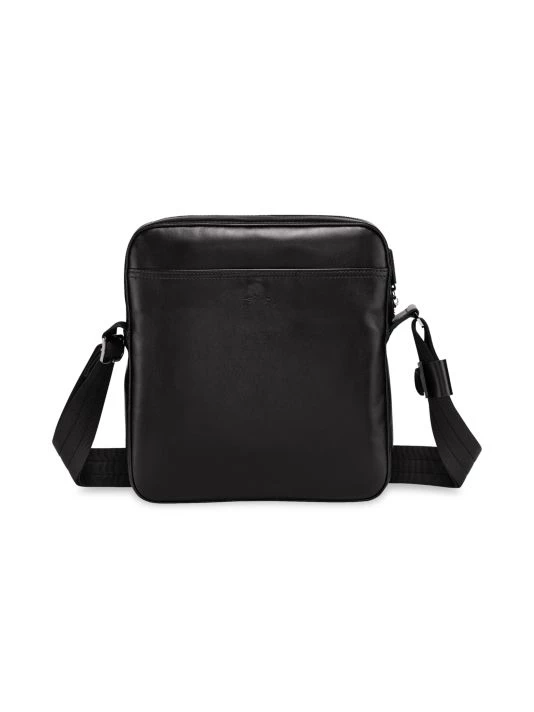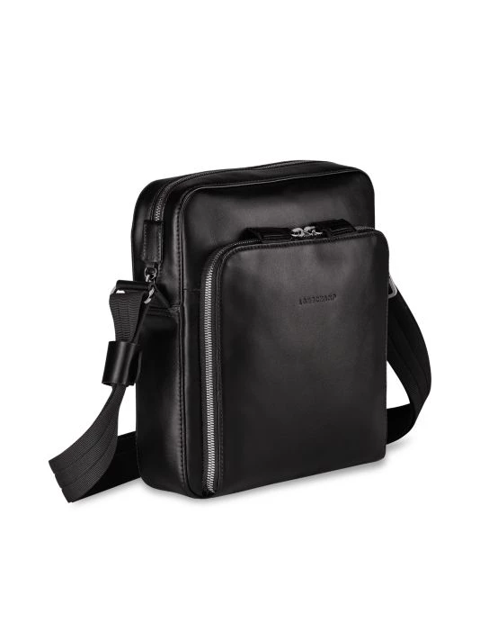 This sleek and spacious leather crossbody bag is equipped with multiple pockets and a padded compartment for a tablet.