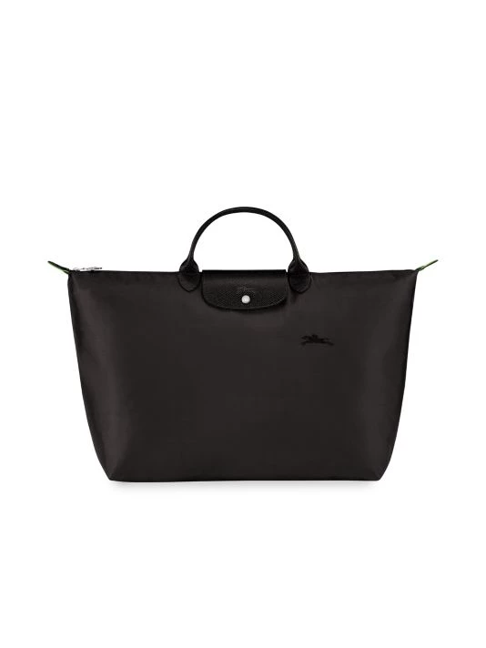 Detailed with the signature horse embroidery, Longchamp’s Le Pliage Green travel bag features Russian leather trim with contrast edges indicative of its environmentally sound use of materials. Taking inspiration from origami, this piece can be carried or folded up into the size of a paperback book.