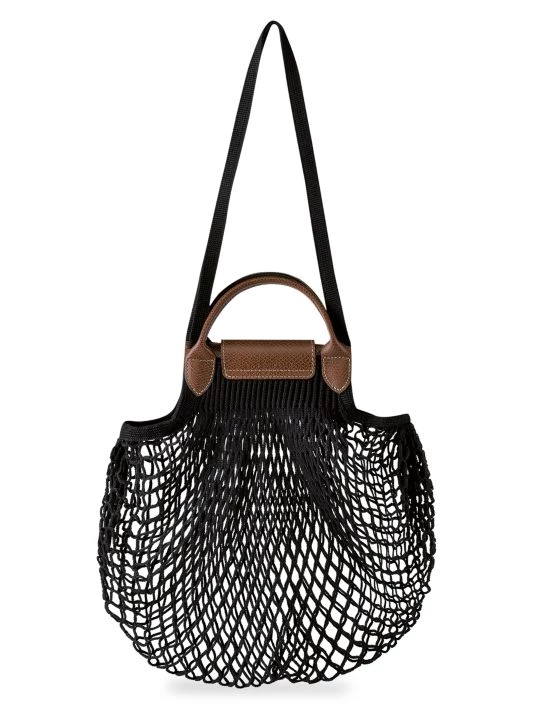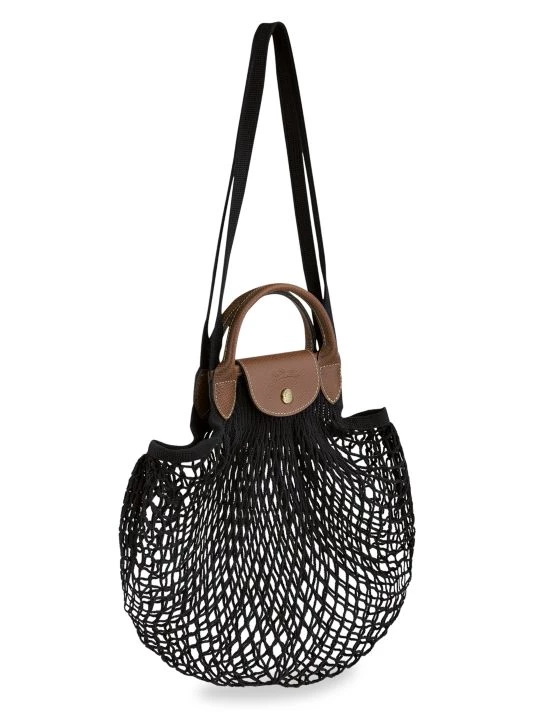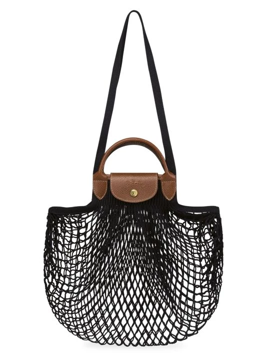 This iconic cotton net bag is adorned with a flap and the famous Le Pliage handles in leather.