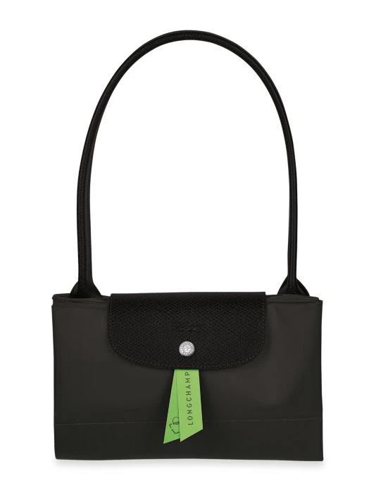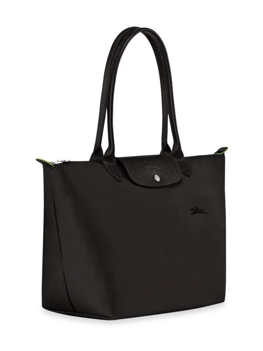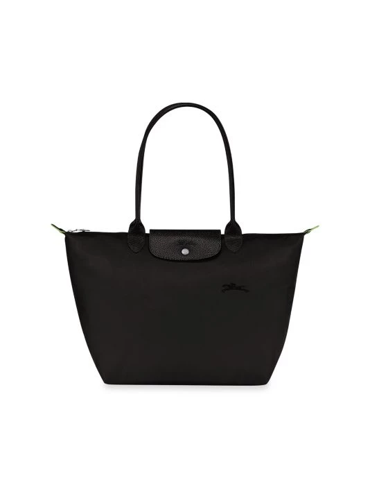 From the Le Pliage Green Collection. This tote has a minimalist silhouette with ample volume and is finished with tone-on-tone Russian leather trim and signature horse embroidery.