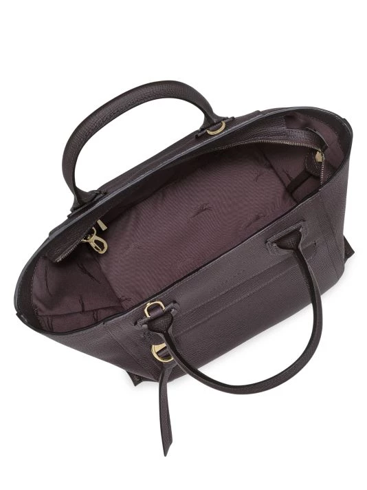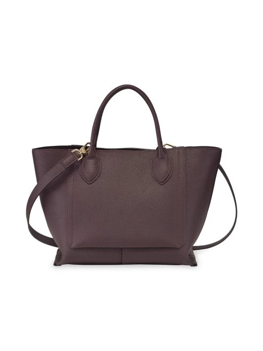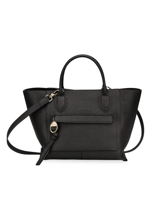 With its sleek lines and trapezium shape, this top handle bag embodies the Longchamp design aesthetic, rendered in rich textured leather with a removable crossbody strap.